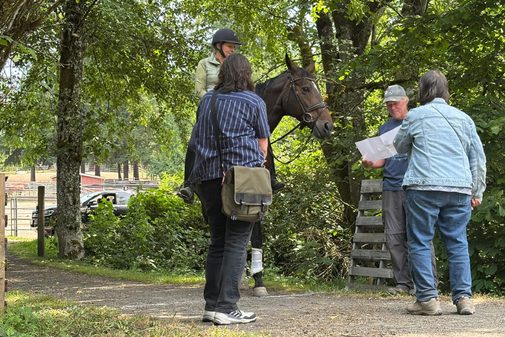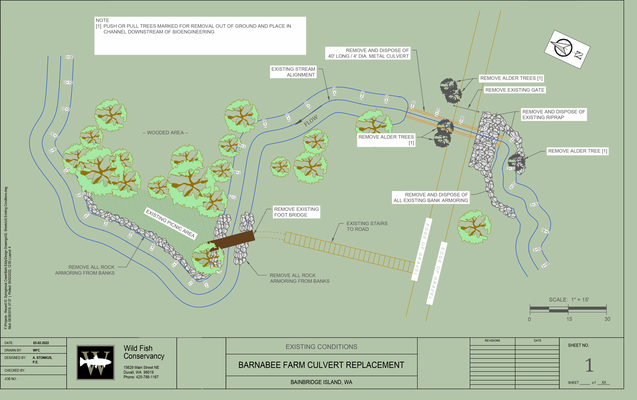 Figure 2: Bainbridge Island Land Trust, Barnabee Farms landowner, and our project engineer meet to discuss the Barnabee Farms fish passage project.